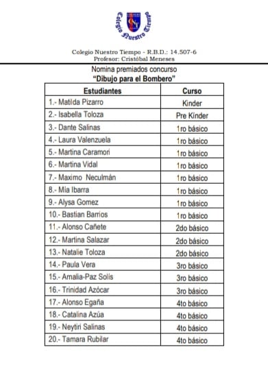 Es de nuestro agrado informar e invitar a los estudiantes premiados por presentar su actividad del Día del Bombero y Concurso de Fotografía.